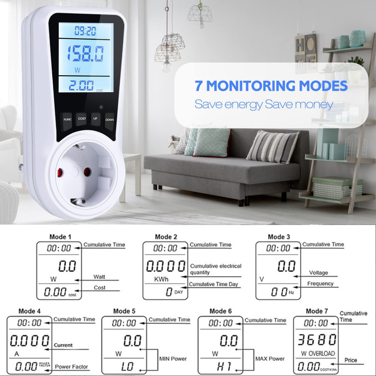🔷️فقط کنتور برق را بین دستگاه و یک پریز برق وصل کنید، سپس میتوانید دقیقاً بدانید که عناصر مختلف خانه شما چقدر برق مصرف میکنند و هزینه آن چقدر خواهد بود. از این کنتور مصرف برق برای نظارت بر مصرف انرژی خود در لحظه استفاده کنید. دستیار صرفهجویی در مصرف انرژی شما، به شما در کاهش هزینه برق کمک میکند.