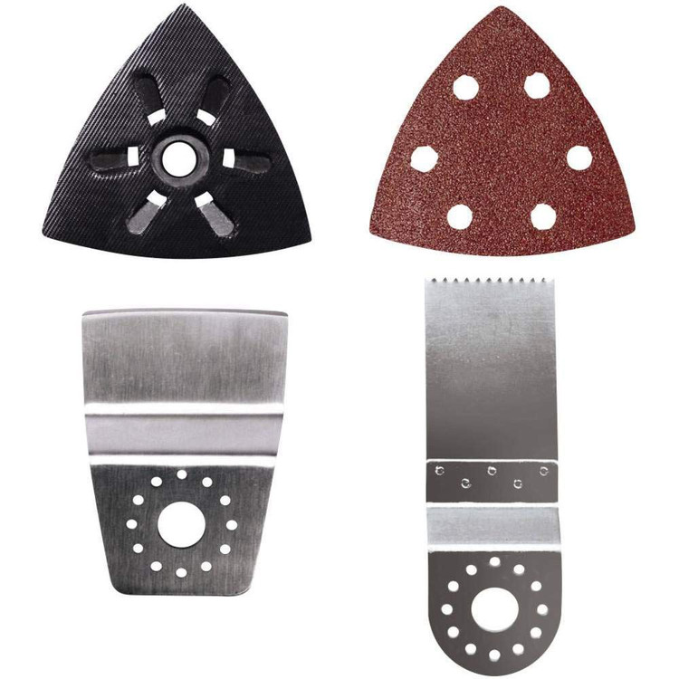 ✨️●《این ابزار چند منظوره با تجهیزات گستردهای ارائه میشود که آن را فوراً آماده استفاده میکند: یک صفحه سنگزنی/سنباده دلتا، کاغذ سنباده ۶x، یک کاردک و یک تیغه اره HCS با برش عمیق
