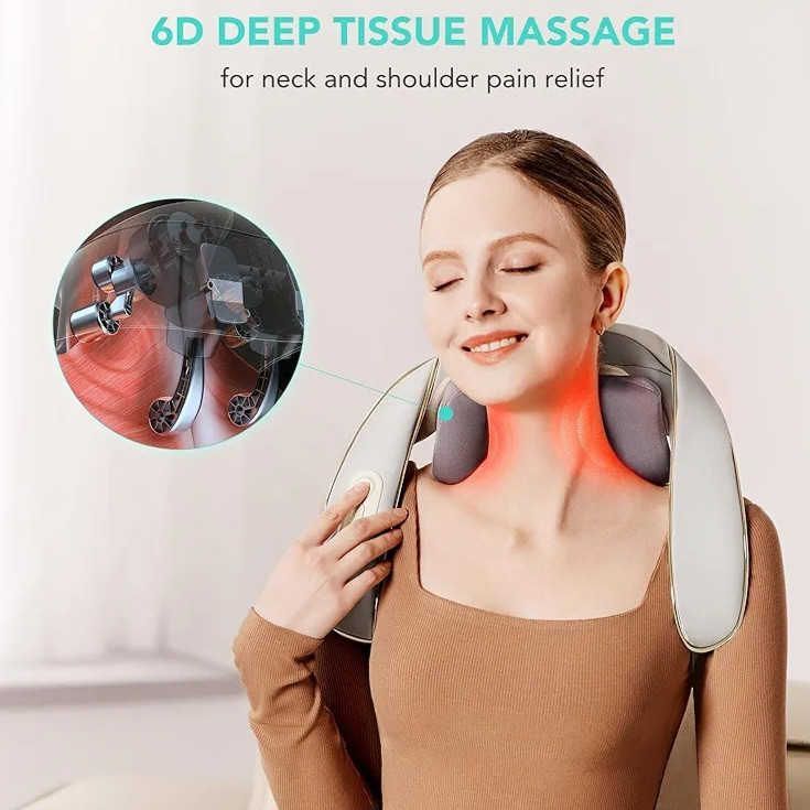 🟣ماساژور گردن و شانه شیاتسو بیسیم 6 بعدی با گرما برای گردن و شانه،