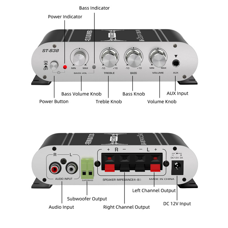 🟣آمپلی فایر ساب ووفر استریو Facmogu ST-838 2.1 کانال HiFi،
