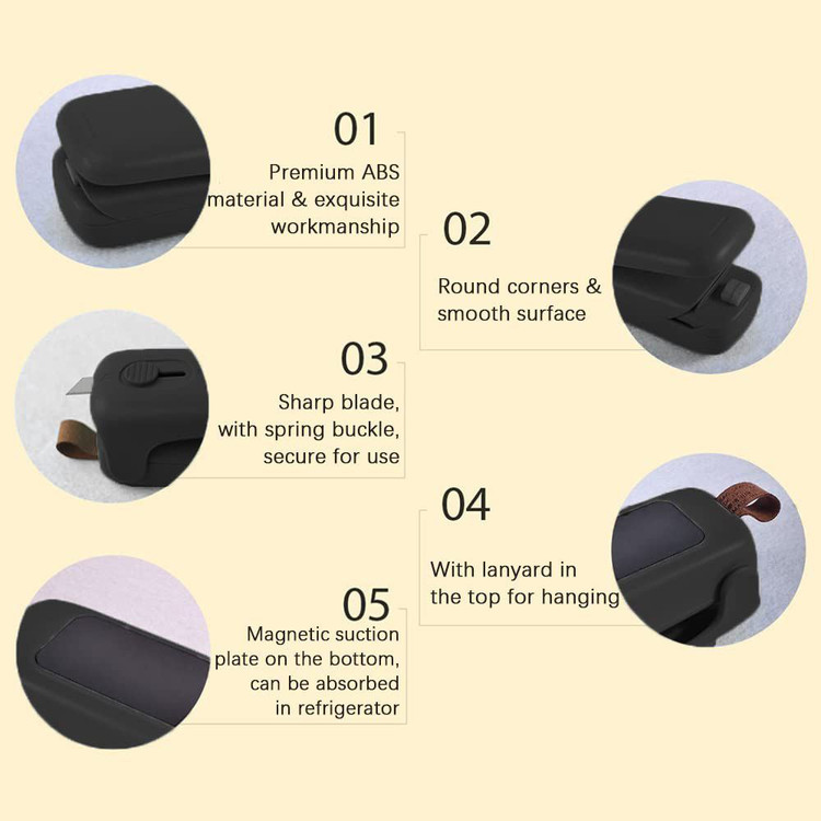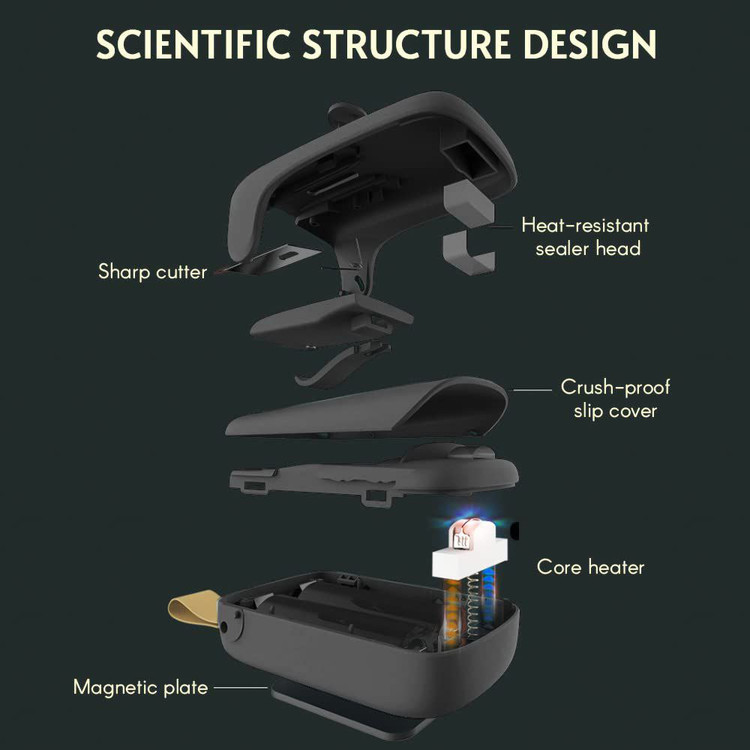 🔷️طراحی دو منظوره، نه تنها برای آب بندی کیسه ها، بلکه با تیغه برش تیز برای باز کردن کیسه، که می تواند به طور خودکار بازگردد و برای استفاده ایمن است.