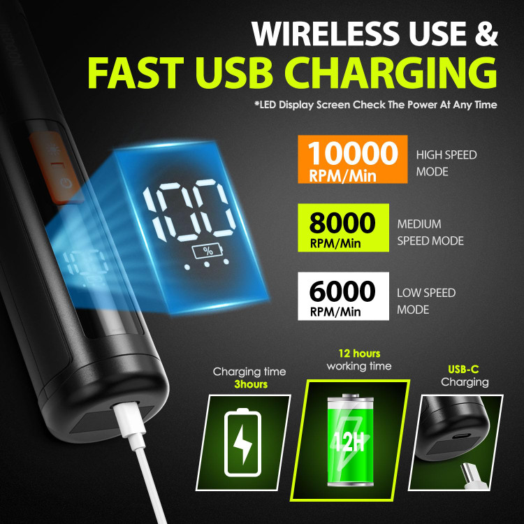 🔷️ناخنگیر سگ IREDOON دارای یک سوئیچ 3 سرعته و 3 پورت ساب است که به صاحبان حیوانات خانگی اجازه میدهد سرعت و تنظیمات ساب را بر اساس اندازه و سختی ناخن حیوان خانگی خود تنظیم کنند.
