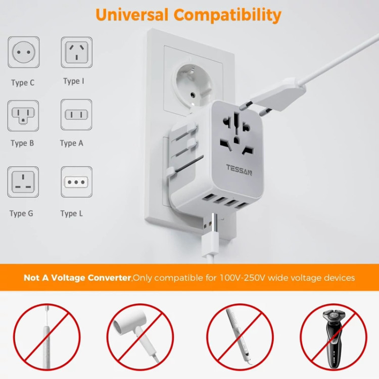 ✅️آداپتور مسافرتی جهانی TESSAN 🟣آداپتور برق جهانی TESSAN، 🟣آداپتور دوشاخه بینالمللی با 4 پریز USB، 🟣لوازم ضروری سفر در سراسر جهان، 🟣مبدل شارژر دیواری All-in-1 برای انگلستان، اتحادیه اروپا، اروپا، ✅️شرح محصول : ✨️●《آداپتور مسافرتی جهانی: 》 🔵این آداپتور مسافرتی بیش از 150 کشور را پوشش می دهد: فرانسه، آلمان، ایتالیا، اسپانیا، ایسلند، یونان، اسرائیل (نوع C). انگلستان، ایرلند، لندن، انگلستان، اسکاتلند، دبی (نوع G)؛ چین، استرالیا، نیوزلند (نوع I)؛ ایالات متحده آمریکا، ژاپن، کانادا (نوع A) و بیشتر؛ ایده آل برای سفر جهانی یا سفر کاری شما ✨️●《آداپتور مسافرتی USB در سراسر جهان:》 🔵پورت های USB می توانند دستگاه های شارژ شده را شناسایی کنند و سرعت شارژ بهینه را تا 3.4 آمپر (حداکثر 2.4 آمپر در هر پورت) ارائه دهند، ایده آل برای تلفن همراه، گوشی، تبلت و غیره. نشانگر به شما امکان می دهد بدانید که شارژر USB در بلوک روشن و خاموش است ✨️●《آداپتور بین المللی دوشاخه 5 در 1: 》 🔵این آداپتور همه کاره می تواند 4 شاخه مختلف را به 1 پریز برق AC جهانی و 4 پورت USB تبدیل کند و تا 5 دستگاه را به طور همزمان شارژ کند. سوکت جهانی دوشاخه های ایالات متحده، اتحادیه اروپا، انگلستان، AU را تبدیل می کند. میتوانید آن را در هر جایی مانند فرودگاه، هتل، خوابگاه، شارژ کنید ✨️●《اندازه قابل حمل: 》 🔵با طراحی سبک وزن تنها 155 گرم، اندازه جمع و جور به این آداپتور برق بین المللی اجازه می دهد تا به راحتی در جیب شما قرار گیرد و به طور موثر در فضای چمدان، کوله پشتی، کیف دستی و کیف دستی شما صرفه جویی شود. بدون محافظ برق، بدون سیم، بنابراین کشتی کروز کاملا تایید شده است ✨️●《حفاظت ایمنی: 》 🔵آداپتور جهانی با فیوز دوگانه به طور موثر از دستگاه های شما محافظت می کند، از ایمنی سفر شما محافظت می کند. توجه: این آداپتور بین المللی فقط بر روی دستگاه های ولتاژ گسترده از 100 ولت تا 250 ولت کار می کند. اگر می خواهید از سشوار، اتو مو، اتو مو استفاده کنید، آنها باید ولتاژ وسیع را پشتیبانی کنند ✅️مشخصات و جزئیات : 🟠تولید کننده : TESSAN 🟠ابعاد محصول : 3.1 x 2.3 x 2.7 اینچ 🟠کشور مبدا چین 🟠رنگ : خاکستری + 4 USB-A 🟠قالب پلاگین : A,C/g/a/i,g,نوع A,نوع C ✅️قیمت با احترام : 3,500,000 هزار تومان ✅️خرید و سفارش انواع وسایل صنعتی و آمازون اروپایی از بهترین و معتبرترین سایتهای جهان ✔️آمازون _ ای بی _ والمارت _ الکسپرس و B&H