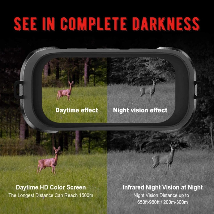 🔵اگر به شکار شبانه، تماشای حیوانات علاقه دارید و یا نیاز به بررسی محیط اطراف، بررسی دام های خود، تماشای موجودات در حیاط خلوت در نیمه شب دارید، این یکی از موارد ضروری برای شماست. عینک دید در شب در تاریکی تصویری با وضوح 1280 در 960 پیکسل و ویدئویی با وضوح 1280 در 960 با سرعت 30 فریم در ثانیه می گیرد. فایلها را میتوان از طریق کابل USB به رایانه شخصی شما برای ذخیرهسازی رویدادهای عالی برای گرامی داشتن در آینده یا برای ارسال به دوستان و خانواده منتقل کرد.