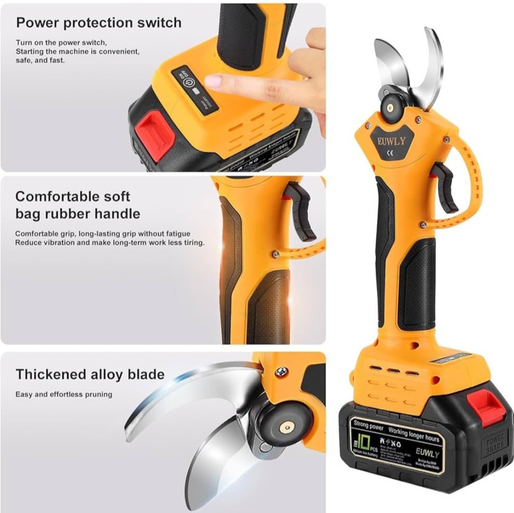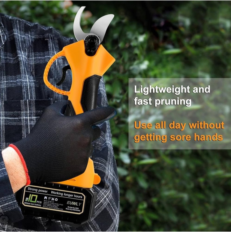 ✨️●《سبک و قابل حمل: 》قیچی های هرس برقی با موتور بدون برس کار میکنند و عمر مفید آنها 3 تا 5 برابر بیشتر از موتور برس معمولی است. وزن قیچی 1.3 کیلوگرم است و میتوان با یک دست با آن کار کرد. روش برش بیسیم و طراحی ارگونومیک بدون لغزش میتواند به کاربران کمک کند تا مدت طولانی بدون خستگی و درد کار کنند.