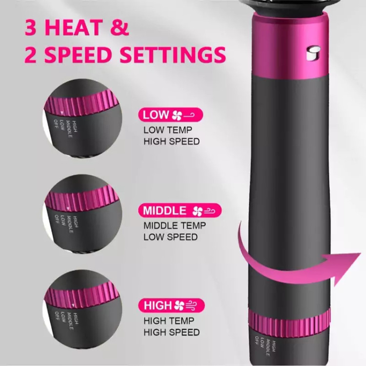 🔵برس سشوار با دکمه های باد و حرارت مستقل پیکربندی شده است، 3 کنترل دما و 2 تنظیم سرعت را ارائه می دهد. با توجه به نیازهای حالت دهنده مو، سرعت باد و دما را تنظیم کنید، سر برس سشوار را جایگزین کنید، به سادگی یک دکمه را فشار دهید تا سر برس مورد نظر را انتخاب کنید و تأیید کنید که متناسب با واحد اصلی است.