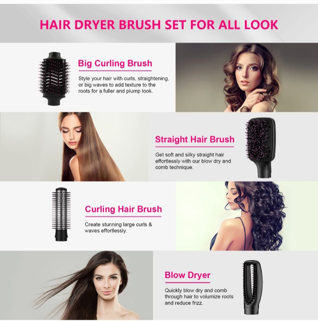 🔵برس هوای گرم 4 در 1 یک برس سشوار چند منظوره است که شامل 4 سبک مختلف سر برس میشود، میتواند به عنوان سشوار، اتو مو، حجمدهنده و فرکننده عمل کند، تمام نیازهای حالتدهنده مو را در خانه یا مسافرت شما برآورده کند، مجهز به 1200 وات ارتقایافته، موها را به سرعت در خانه به دست آورید و به سرعت پول درآورید.