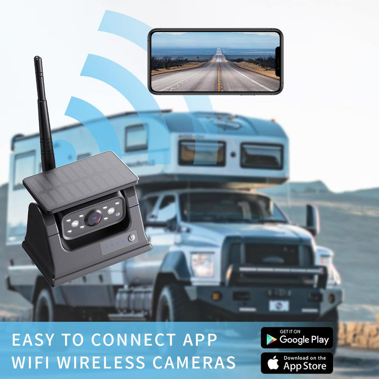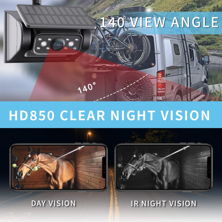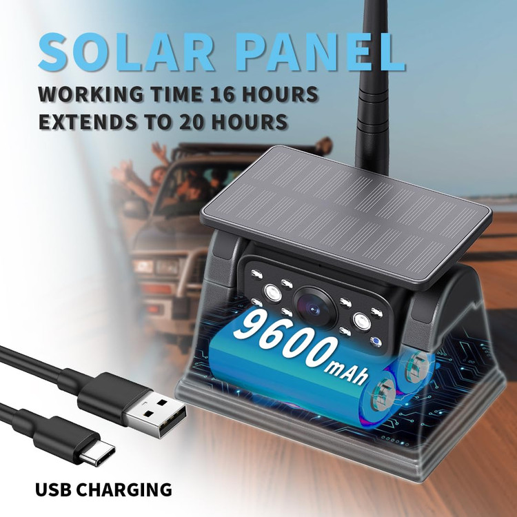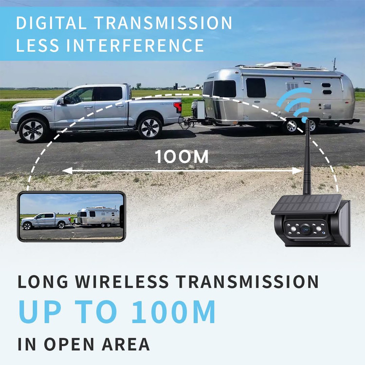 🔷️دوربین پشتیبان وایفای باتریدار، آنتن وایفای داخلی، فاصله انتقال بیسیم تا ۱۰۰ متر، بیشتر از سایر دوربینهای هم نوع، سیگنال پایدارتر است. دوربین دید عقب رادیویی خورشیدی برای انواع مختلفی از وسایل نقلیه مانند ون، کامیون، کمپر، تریلر، ون، SUV، RV، تریلر اسب و غیره مناسب است.