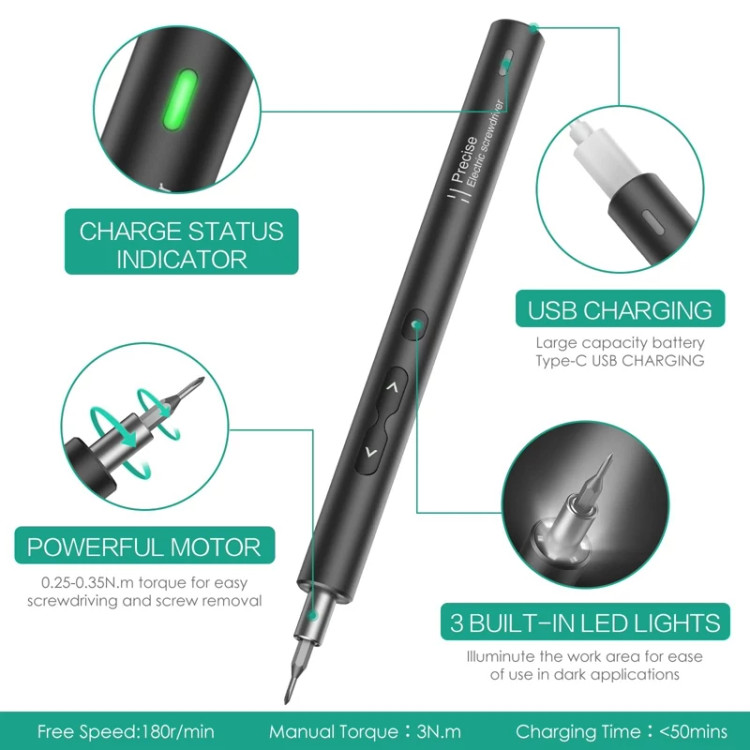 🔵کیت پیچ گوشتی برقی دارای دسته الکتریکی است که می تواند کار شما را کارآمد و سریع کند و در وقت شما صرفه جویی کند. گشتاور خروجی: 0.25-0.35 نیوتن متر، صدای کم در حال اجرا. می توان آن را برای تلفن های همراه / قاب عینک / لپ تاپ اعمال کرد، اما نه برای وسایل بزرگ.