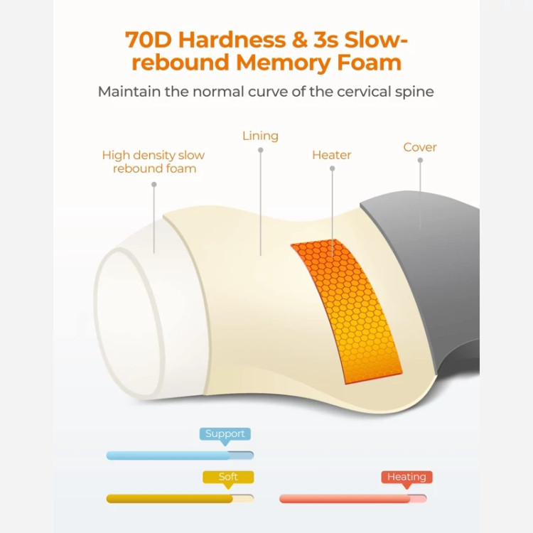 🔷️قوس به کشش ستون فقرات گردنی کمک می کند و منحنی استاندارد گردن را حفظ می کند. زبانه بالش برای حمایت از گردن و کاهش فشار طراحی شده است. هنگامی که فوم حافظه بازگشتی آهسته با دمای بدن کاربر تماس پیدا می کند، ناحیه فشار به طور مساوی توزیع می شود. بازگشت آهسته از ناراحتی جلوگیری می کند.