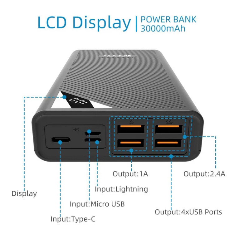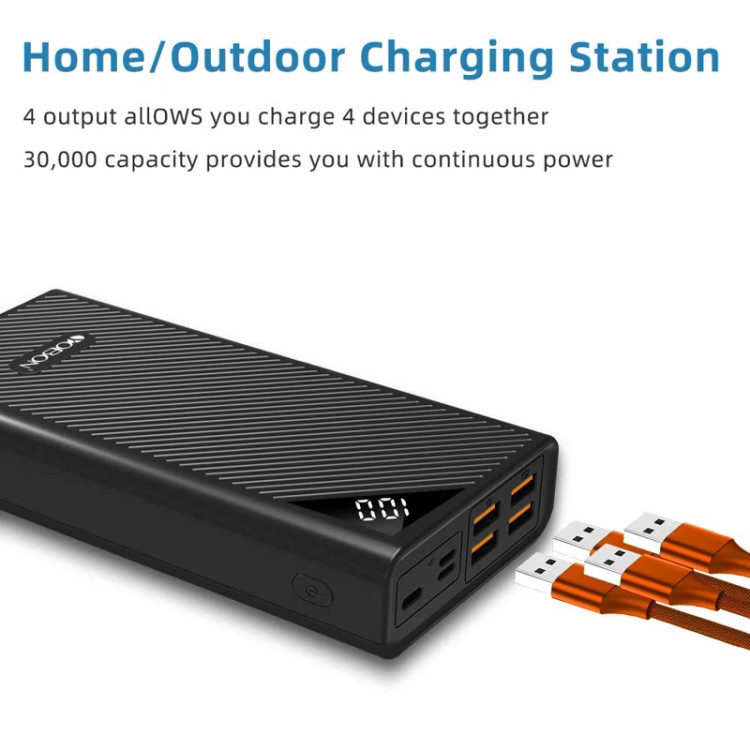 🟣شارژر تلفن قابل حمل پاور بانک 30000 میلی آمپر ساعت با ظرفیت بالا باتری پشتیبان خارجی 4 پورت USB شارژ سریع صفحه نمایش LCD 3 ورودی پاور پک برای آیفون تبلت آیپد هوآوی سامسونگ