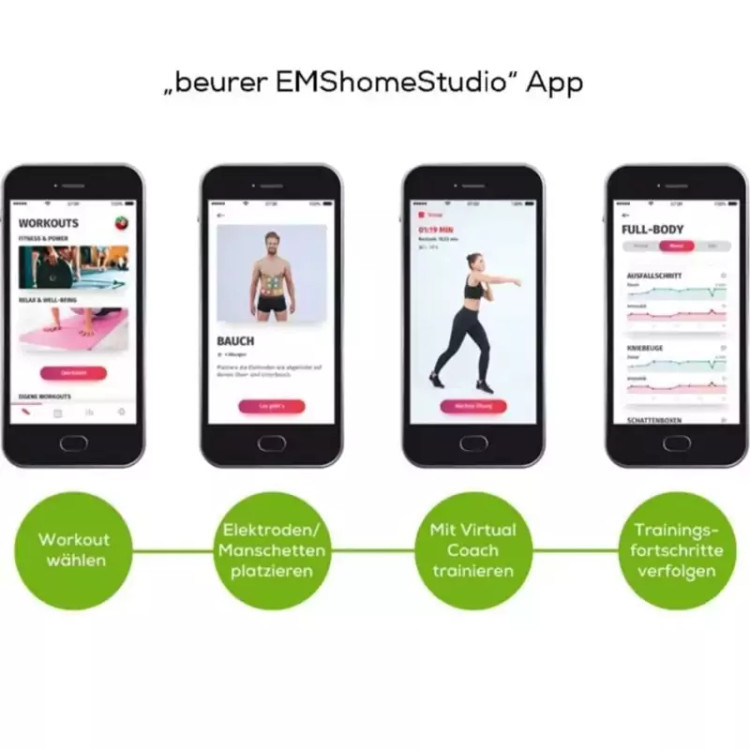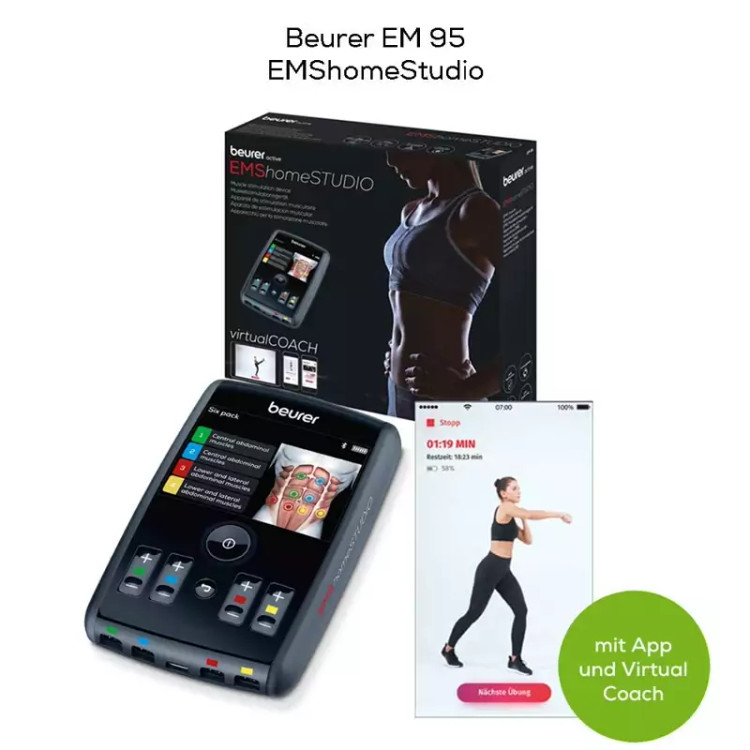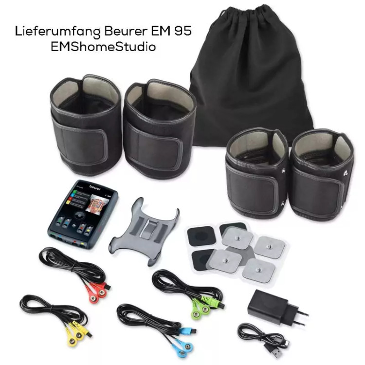 🔵دستگاه تحریک عضلانی Beurer EMSHomeStudio با کاف، کابل اتصال، کیسه ذخیره سازی و VirtualCOACH از طریق برنامه "Beurer EMShomeStudio"