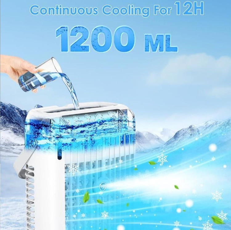 🟣کولر کوچک با 3 سرعت فن، تایمر 6 ساعته، 1200 میلی لیتر،