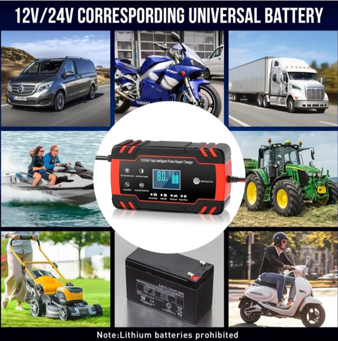 🟣شارژر تعمیر و نگهداری پالس برای ماشین، موتورسیکلت، ماشین چمن زنی
