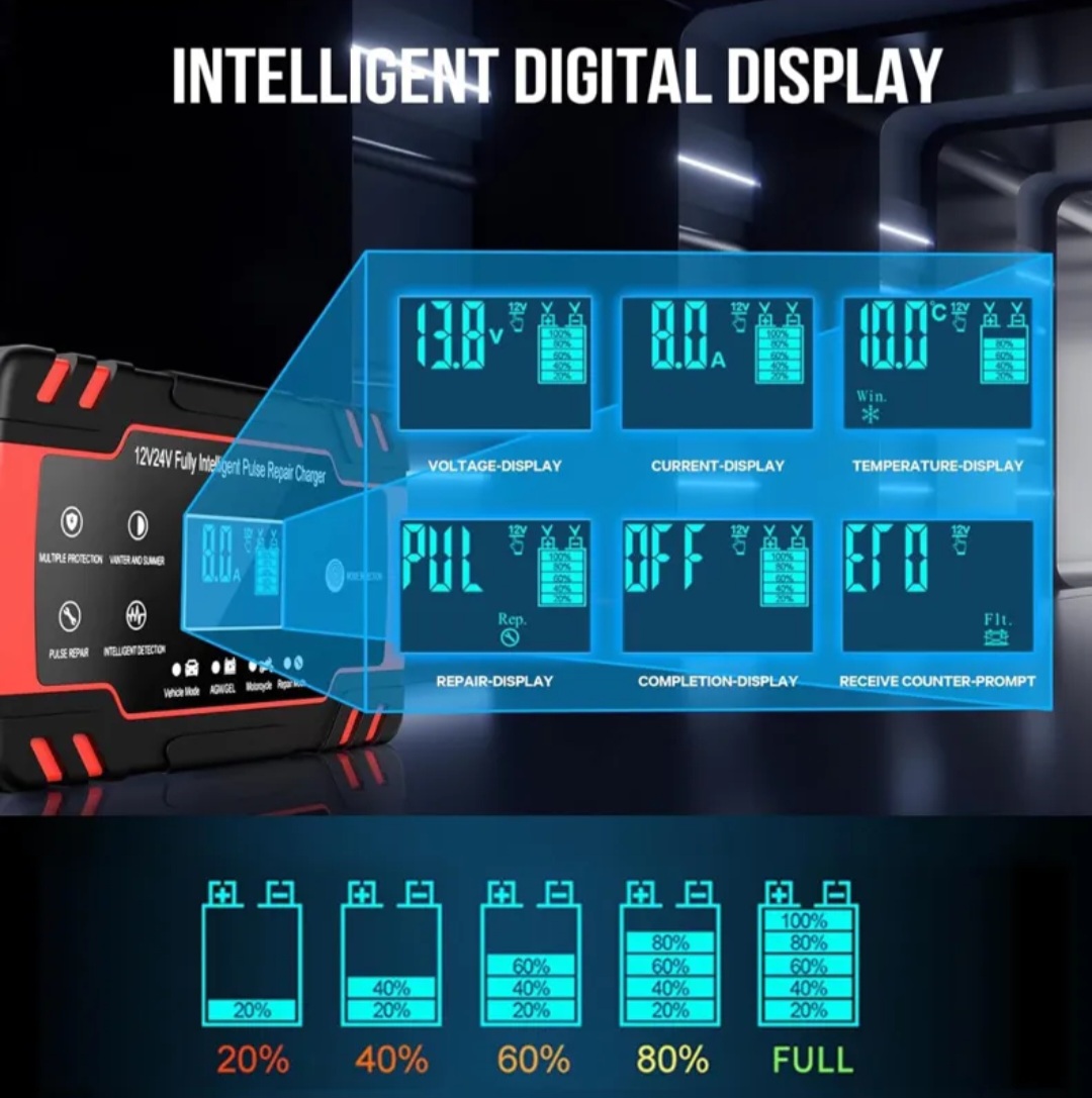 🔷️باتریهای خودرو. این شارژر برای باتریهای سرب-اسید 12 ولت / 24 ولت 2 AH-150 Ah و باتریهای استارت-استاپ مناسب است.