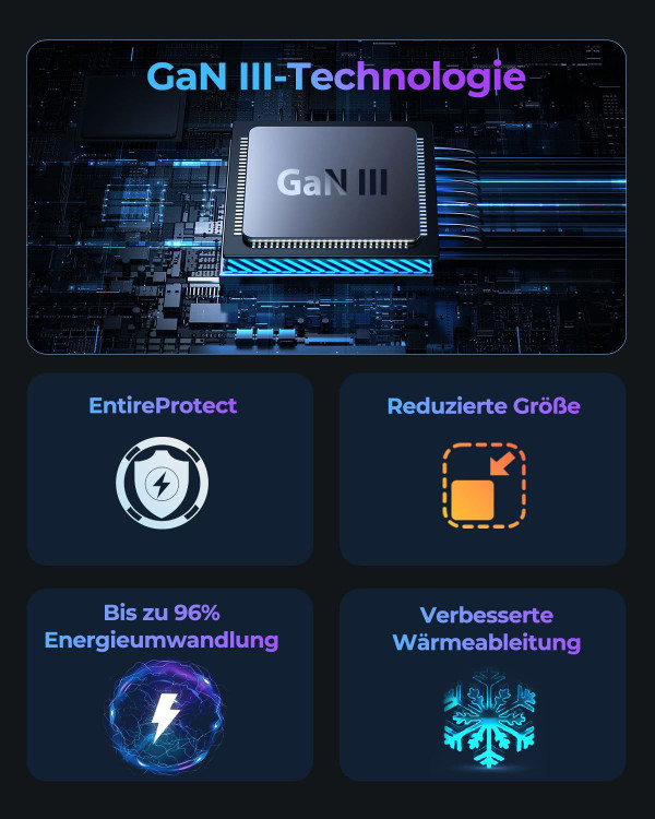 🔷️این شارژر GaN به شما امکان می دهد لپ تاپ، تلفن و تبلت خود را به طور همزمان شارژ کنید. ویژگی منحصر به فرد Dynamic Power Distribution Omnia II به همه دستگاه ها اجازه می دهد تا با سرعت مطلوب و بدون کاهش سرعت شارژ شوند.