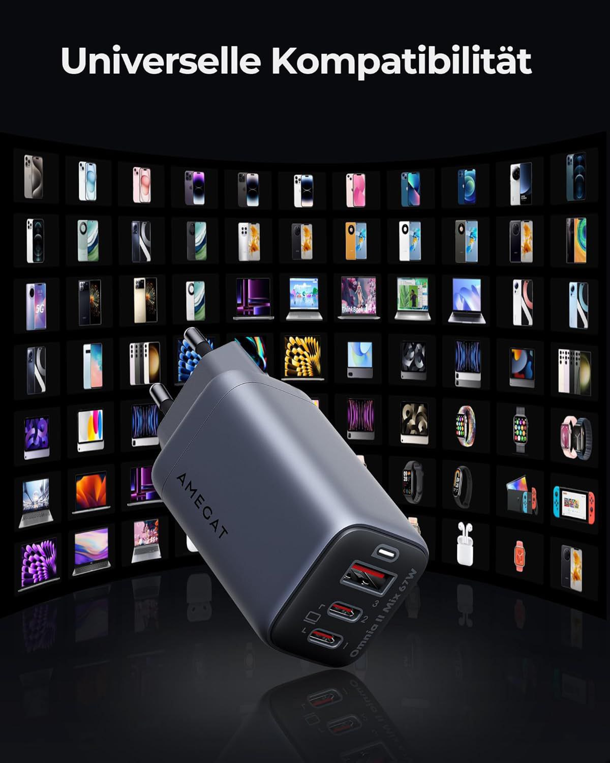 🔷️این شارژر GaN به شما امکان می دهد لپ تاپ، تلفن و تبلت خود را به طور همزمان شارژ کنید. ویژگی منحصر به فرد Dynamic Power Distribution Omnia II به همه دستگاه ها اجازه می دهد تا با سرعت مطلوب و بدون کاهش سرعت شارژ شوند.