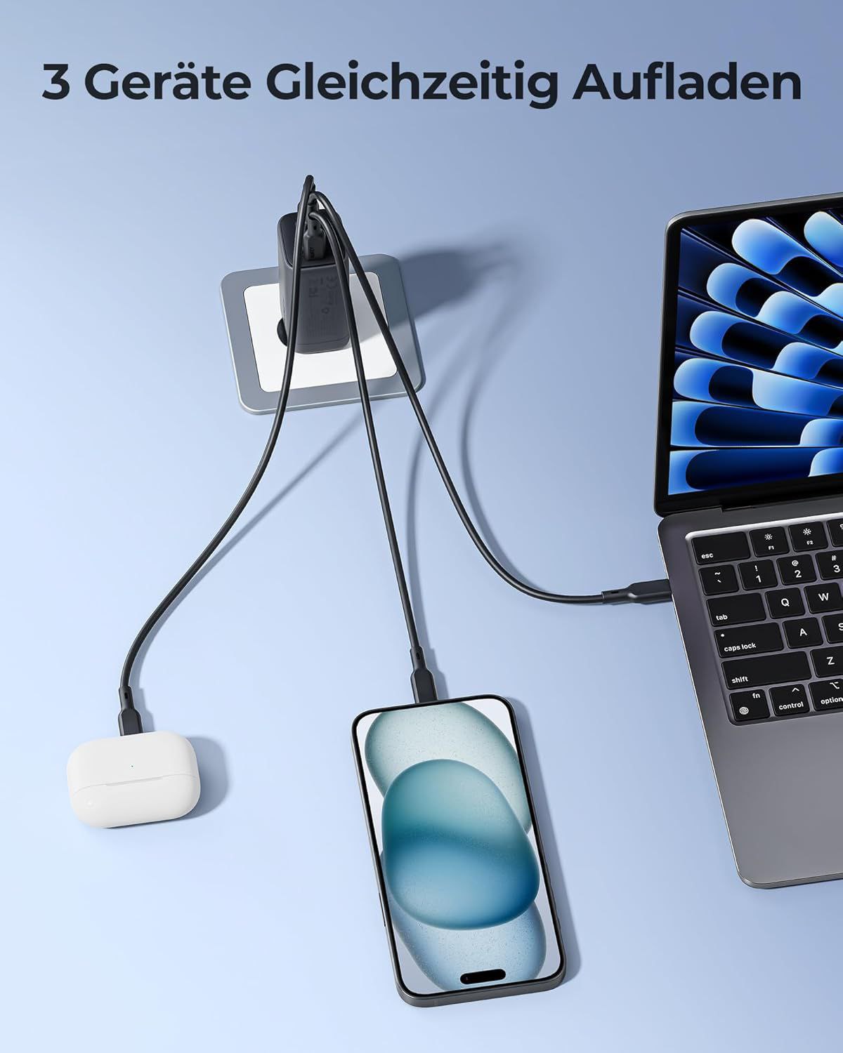 ✨️●《شارژ 3 دستگاه به طور همزمان با 1 پورت USB-A و 2 پورت USB-C، :》