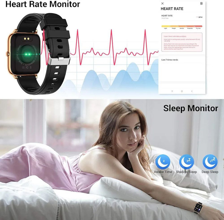 🔷️ردیاب تناسب اندام با مانیتور ضربان قلب از نظارت 24 ساعته ضربان قلب برای نظارت و ثبت داده های ضربان قلب برای ثبت بهتر وضعیت جسمانی شما پشتیبانی می کند. می تواند خواب شما (خواب عمیق، خواب سبک و هوشیاری) را ثبت کند و خواب شما را برای تنظیم زمان استراحت شما تجزیه و تحلیل کند. همه این داده ها به شما کمک می کند زندگی سالم تری داشته باشید.