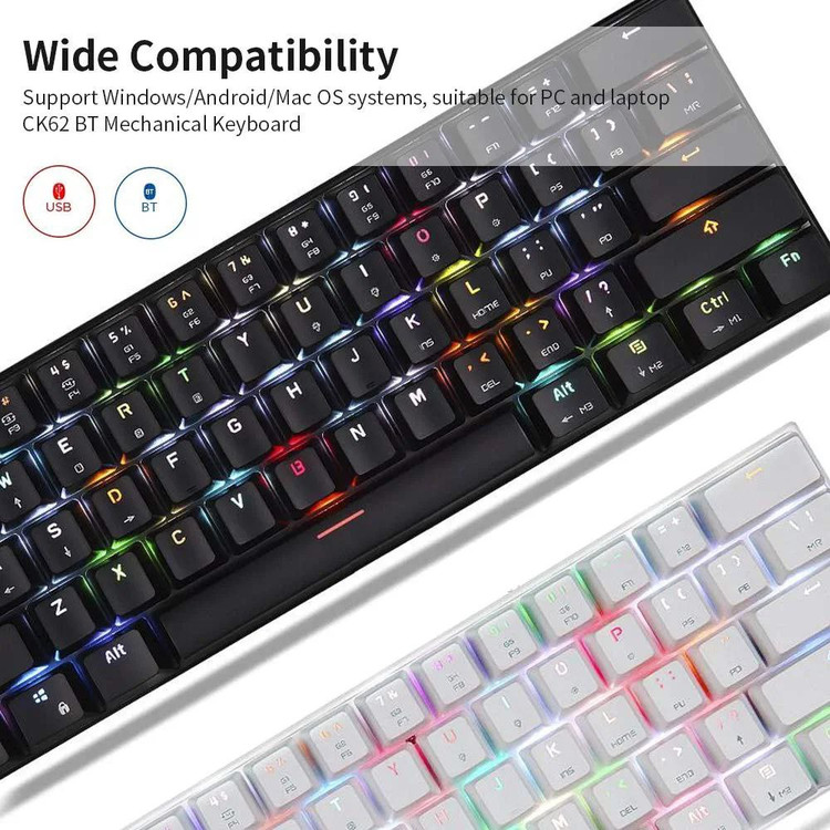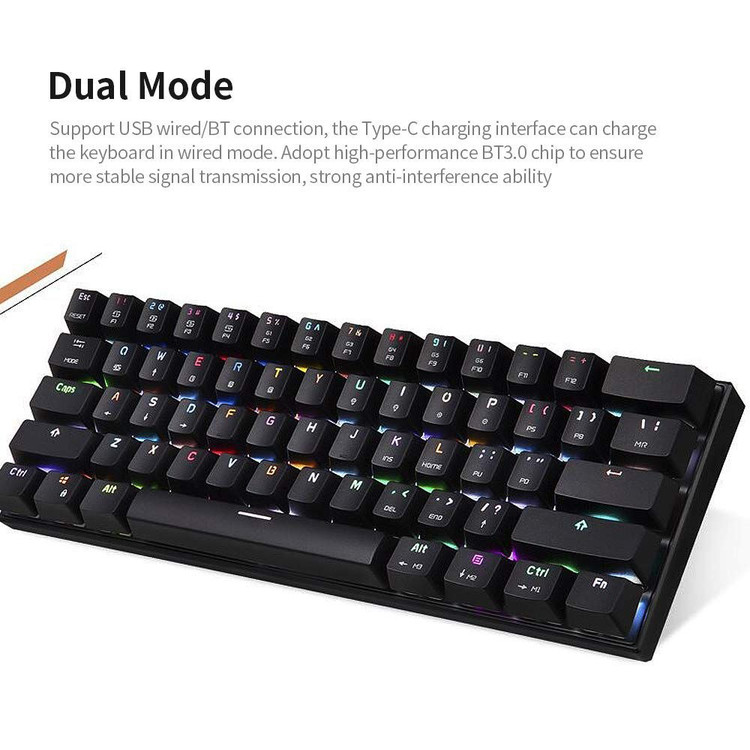 🔷️از اتصال کابل USB/BT پشتیبانی می کند، رابط شارژ Type-C می تواند صفحه کلید را در حالت کابل شارژ کند. استفاده از تراشه BT3.0 قدرتمند برای اطمینان از انتقال سیگنال با ثبات تر، فاصله انتقال موثر 10m و توانایی ضد تداخل قوی.